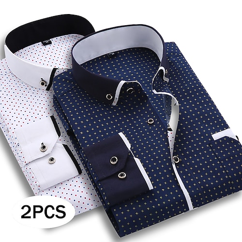 Per uomo Camicia Camicia elegante Camicia button-down Geometrico Casuale Quotidiano Bianco rosso Blu navy nero Blu navy bianco Blu navy rosso Manica Lunga Collo ripiegato Tutte le stagioni