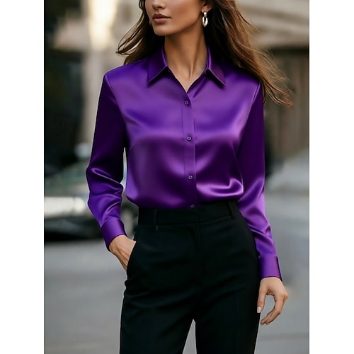 Per donna Camicia Camicia button-down Camicia casual Blusa Bottoni Semplice Elegante Classico Moderno Manica Lunga Colletto a Camicia Top Regolari Quotidiano Ferie Uscire Nero Bianco Viola Albicocca
