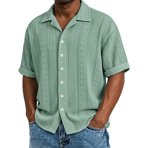Per uomo Camicia Tessuto Camicia button-down Camicia Jacquard Nero Bianco Verde chiaro Blu marino Viola Manica Corta Geometrico Bavero Quotidiano All'aperto Jacquard Abbigliamento Streetwear Casual