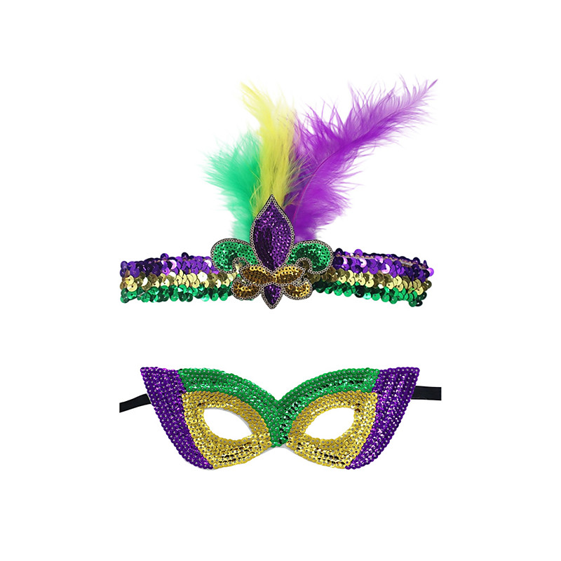 Women's Polyester Sequin Mardi Gras Mardi Gras Mask and Headband Set – Vibrant Colors with Feathers, Perfect for Carnival and Masquerade Parties