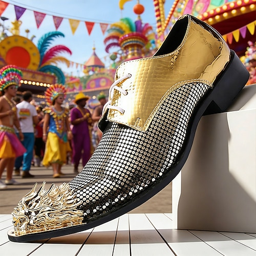 Männer Gold und Silber Pailletten Dress Schuhe Funkelnde formelle Schuhe für Karneval Mardi Gras und Kostümpartys Trendige Schuhe für Festival- und Feierkleidung