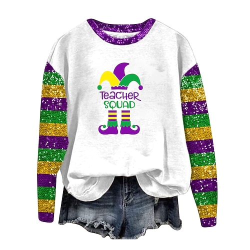 Print Mardi Gras 2026 T-shirt Sleeve T-shirt Graphic for Women's Adults' 3D Print for Carnival Mardi Gras Club Festival