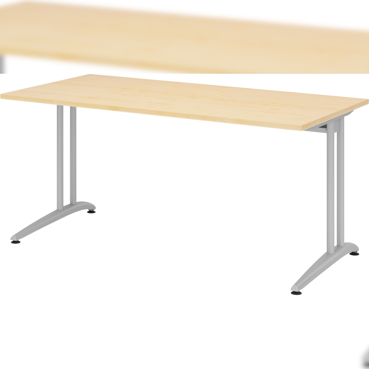 bümö Schreibtisch B-Serie 160x80 cm, Tischplatte aus Holz in Ahorn, Gestell aus Metall in Silber - PC Tisch, Computertisch für's Büro, Office