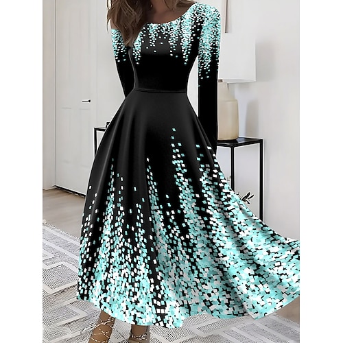 Per donna Abito Midi Abito a trapezio Casual All'aperto Uscire Vestibilità regolare Grafico Blocco di colori Manica Lunga Girocollo Vino Blu Verde Grigio Primavera Autunno