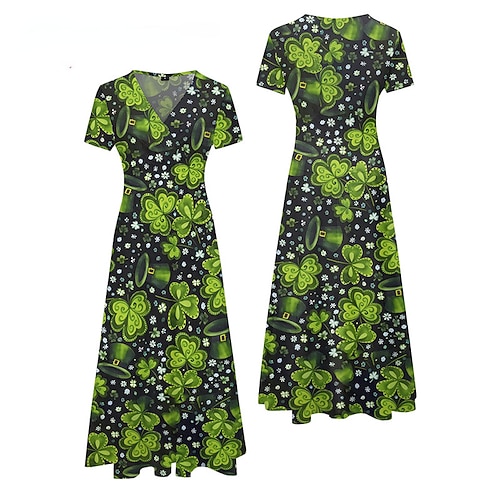 Per donna Abito Midi Abito da Ballo Vestito da Festa Elegante Moda Moderno Feste Occasione speciale San Patrizio Vestibilità regolare Grafico Trifoglio Manica Corta Scollo a V Verde Estate
