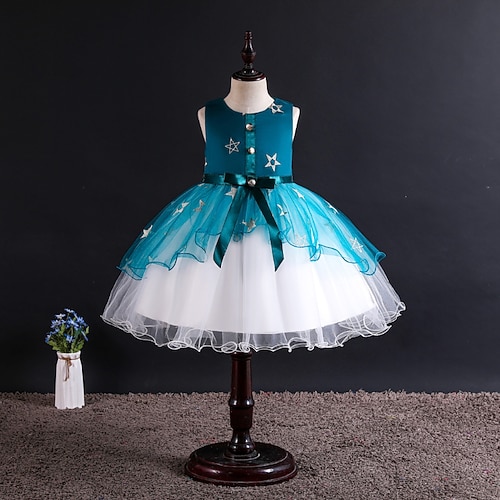 Abito da damigella d'onore bambina Ragazze Abito formale Abiti da sposa Feste Matrimonio Formale Adorabile Principessa Bello Patchwork Rete Stella Senza Maniche Girocollo Blu Nero Dai 4 anni in su