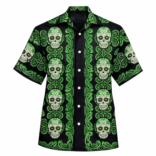 Cinco de Mayo Herren Calavera Mexiko Totenkopfe Hemd Knopfhemd Camp-Kragenhemd Kurzarm Vintage-Retro Streetwear Urlaub Sommer Frühling Kubanisches Halsband 3D-Druck Blau Rote Purpur Grün