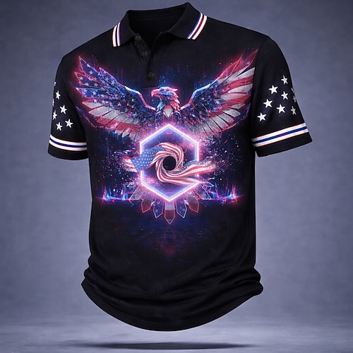 4. Juli 2026 250. Herren Adler Poloshirts Kurzarm Polo-Shirts Hemden mit Kragen Lässig Outdoor Athleisure Knöpfe Frühling Sommer Blau Rote Grau