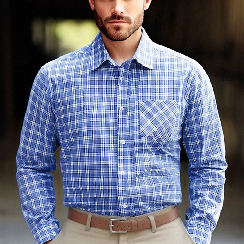 Men's Shirt Dress Shirt Button Up Shirt Plaid Wedding Daily Navy Blue Sky Blue khaki Long Sleeve Turndown Spring Fall Clothing Apparel Front Pocket