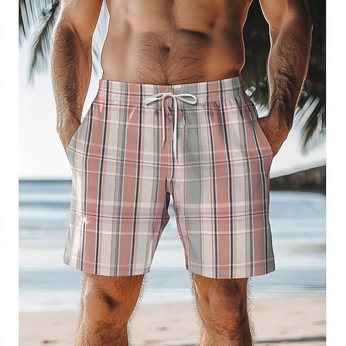 Men's Grid / Plaid Geometric Pattern Swim Trunks Swim Shorts Board Shorts Mid Waist Fashion Designer Surfing Holiday Beach Drawstring Pocket Elastic Waist Designer Clothing Apparel