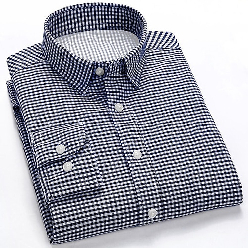 Herren Oberhemd Plaid Hochzeit Urlaub Schwarz Marineblau Dunkel Blau Hell Gray Langarm Umlegekragen Ganzjährig Bekleidung Button-Down