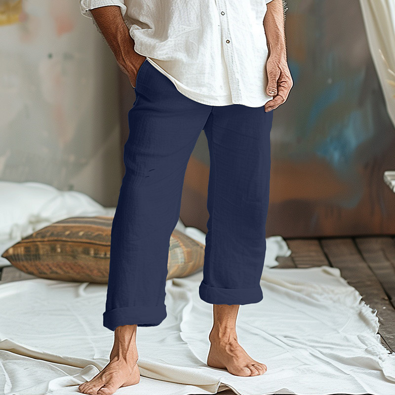 Men's Linen Pants Trousers Summer Pants Gauze Pants Pocket Drawstring Elastic Waist Plain Comfort Breathable Full Length Home Yoga Daily Classic Style Chic Modern White Navy Blue
