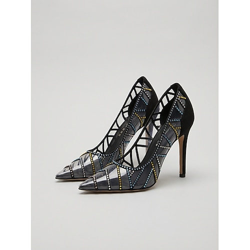 Décolleté da donna con tacco alto a punta in rete, eleganti scarpe da cerimonia con tacco a spillo per invitata a un matrimonio, matrimonio in città eventi serali formali