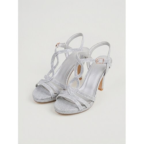 Sandali da donna con tacco alto e cinturini dorati glitterati, eleganti scarpe da cerimonia a punta aperta per invitati a matrimoni, matrimoni in giardino eventi formali