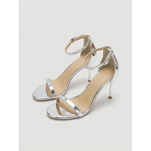 sandali da donna con tacco alto e cinturino alla caviglia color oro, eleganti scarpe da sposa minimaliste per matrimoni in città
