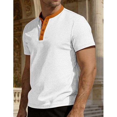 Per uomo Maglietta Maglia Henley Camicia a Maniche Corte Manica Corta Henley Estate Primavera Blocco di colori Moda Streetwear Casual Jacquard Bottoni Quotidiano Vacanza Sport Outdoor Nero Bianco