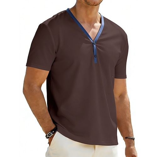 Per uomo Maglietta Maglia Henley Camicia a Maniche Corte Manica Corta Scollo a V Estate Primavera Blocco di colori Moda Streetwear Tempo libero Bottoni Quotidiano Vacanza Sport Outdoor Nero Bianco