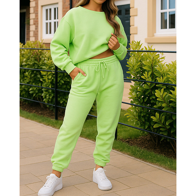 Women's Pullover Sweatsuit Sets 2 Piece Tracksuit Lounge Outfits with Pocket Solid Colored Clothing Suit Fall / Winter Light Coffee Black Spandex Gym Running Fitness Long Sleeve Sport Activewear
