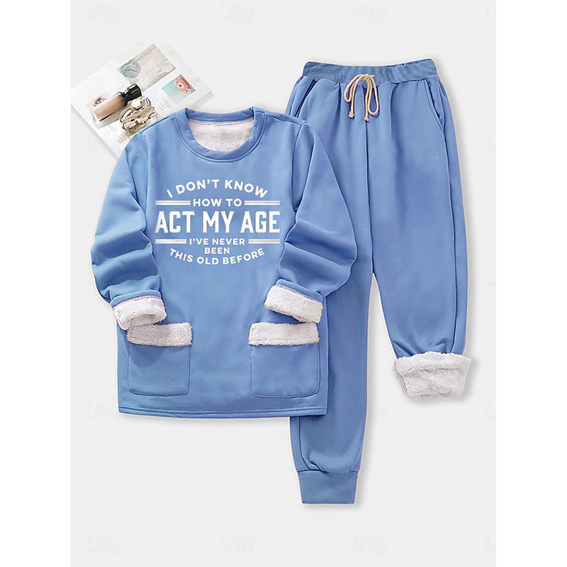 Women's Warm Daily Two Piece Sets Tracksuit Pants Sets Long Sleeve Crew Neck Graphic Letter Drawstring Print Casual Daily Black Pink Blue Fall Loose Fit