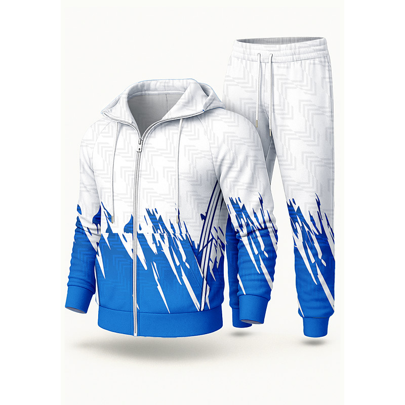 Men's Hoodie Tracksuit 2 Piece Tracksuit Drawstring Zip Up Geometric Clothing Suit Fall Blue Vocation Outdoor Travel Lightweight Fashion Long Sleeve Sport Activewear Stretchy Regular Fit