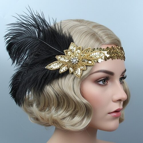 Anni Ruggenti Anni 1920 Fascia Flapper Copricapo Accessori per la testa Il grande Gatsby Ragazza Flapper Piuma Costume Per donna Natale Carnevale Mascherata Festa a tema retrò Danza Charleston Adulti