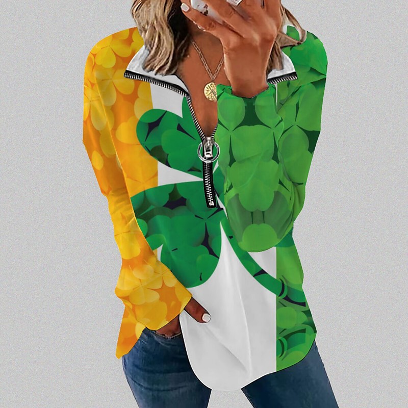 St. Paddy's Day St. Patrick's Day Women's T Shirt Leaf St. Patrick's Day Basic Long Sleeve V Neck Regular Tops Casual Holiday Print Quarter Zip Grass Green White Yellow Light Green Army Green Fall