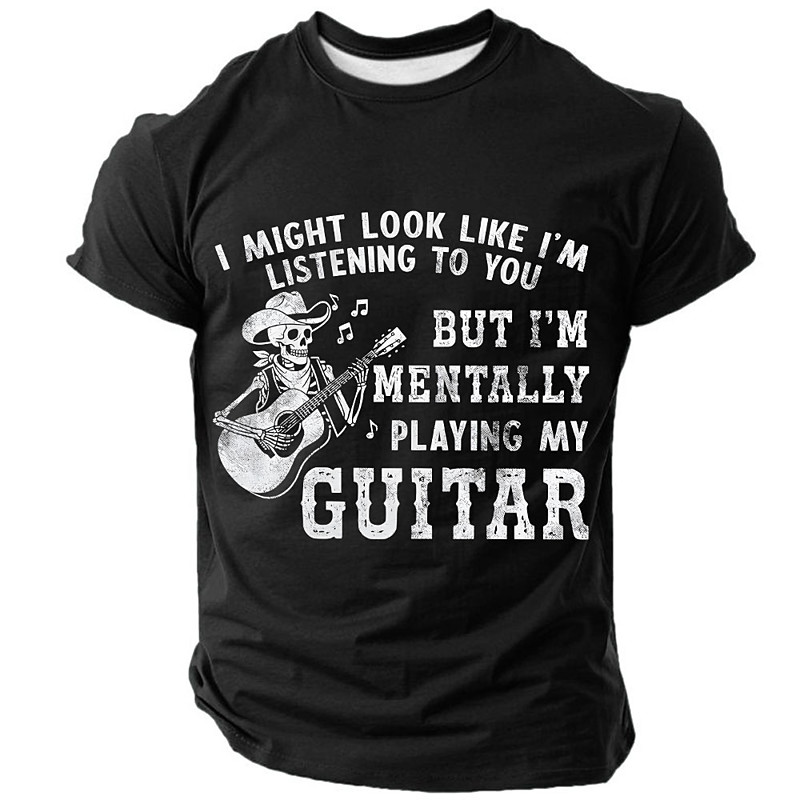 Men's Guitar Funny Slang T Shirt Short Sleeve T shirt 3D Print Crew Neck Shirt Fashion Daily Daily Street Blue Black Red Summer Spring Clothing Apparel S M L XL XXL XXXL