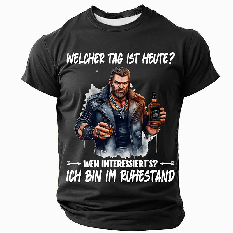 Men's Graphic T-Shirt: Funny 'What Day Is Today? Who Cares? I'm Retired' Design with Whiskey Man