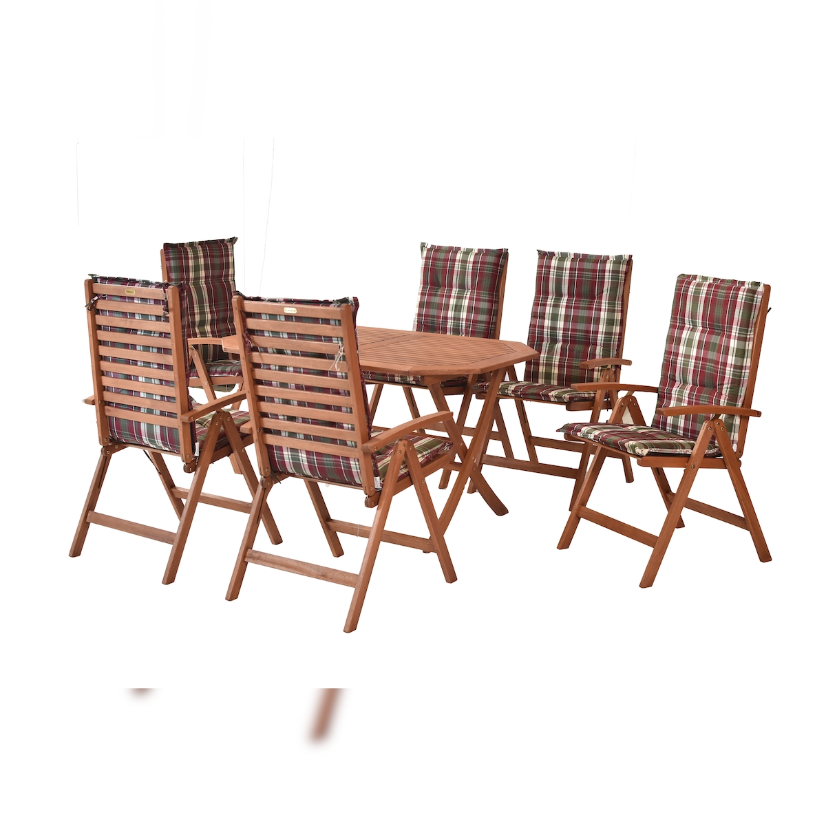 Merxx Borkum Gartenmöbelset 13tlg., 6 Klappsessel, 6 Auflagen, 1 Tisch 135 x 85 cm, Eukalyptus