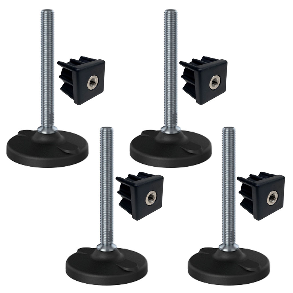 Ruostumaton jalka 16x150x100mm, muovia rei'illä+lisäosilla 50x50x2.0mm -Sarja 4 kpl