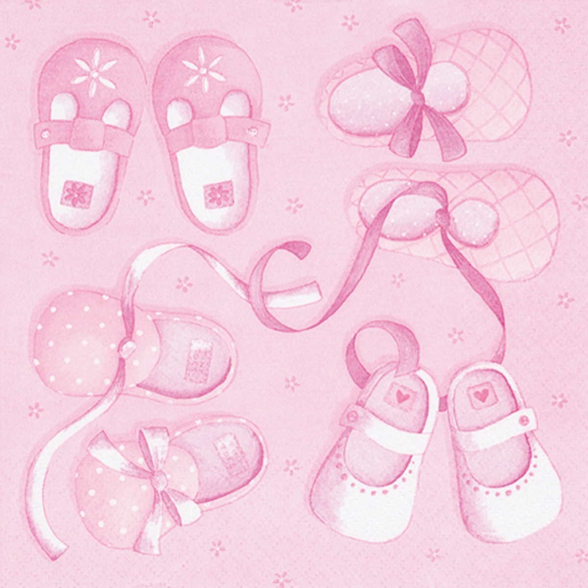 ti-flair 20 Servietten Papier 33x33cm 3-lagig hochwertige Einweg Papierservietten Motivservietten Babyschuhe Motiv Kindergeburtstag Babyparty Rosa