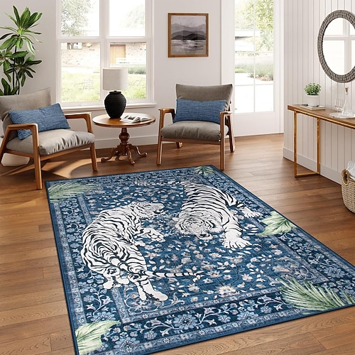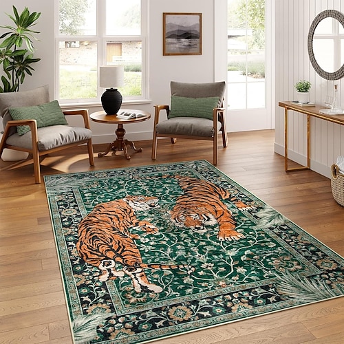 tappeto in velluto di cristallo in stile persiano, stampa di tigre tribale tropicale, arredamento per soggiorno e camera da letto, morbido e confortevole zerbino, tappeto decorativo unico per la casa