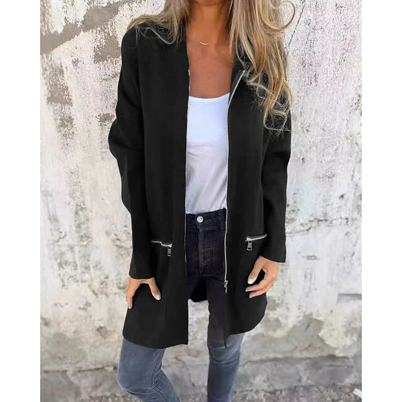Women's Parka Comfortable Breathable Zipper Pocket Casual Plain Casual Vacation Street Daily Wear Zipper Long Hooded Loose Fit Long Sleeve Outerwear Black Pink Khaki Spring Fall