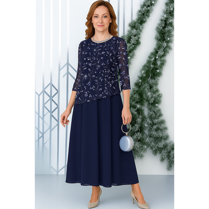 A-Line Floor Length Party Dress Cocktail Dress Wedding Guest Dress Mother of the Bride Dress 3/4 Length Sleeve Crew Neck Elegant Simple Minimalist Formal Wedding Guest Chiffon Beaded Lace with Bow(s