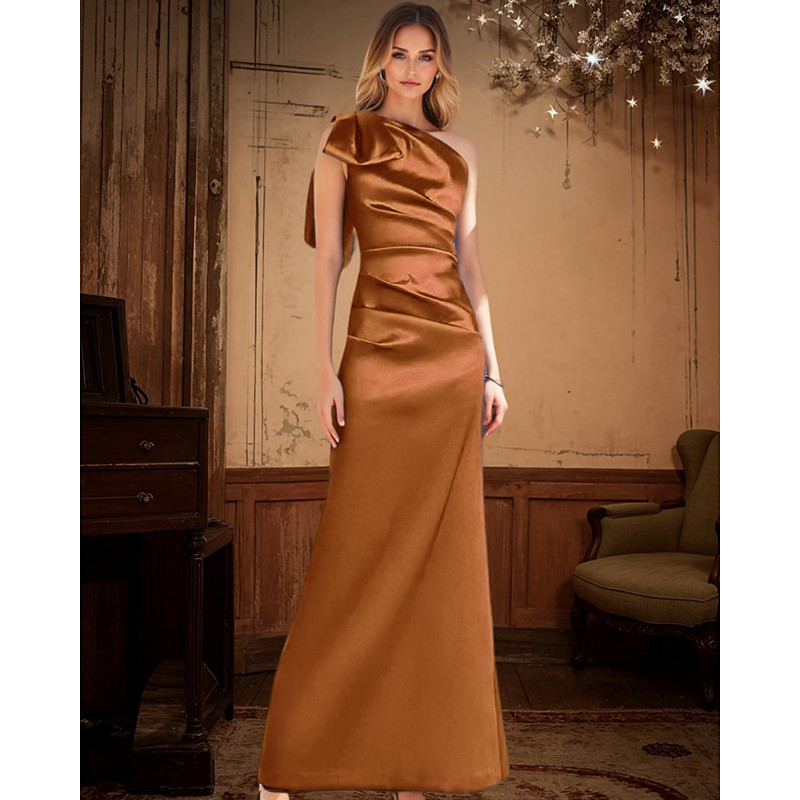 Mermaid Trumpet Floor Length Prom Dresses Evening Gown Ball Gown Formal Dress Elegant Celebrity Style Sleeveless One Shoulder Garden Party Wedding Satin with Bow(s) Pleats Ruched
