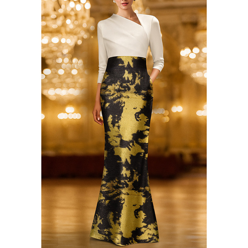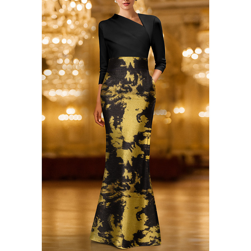 Sheath Column Ankle Length Cocktail Dresses Prom Dresses Evening Gown Ball Gown Elegant 3/4 Length Sleeve Shirt Collar Wedding Formal Pocket Stretch Crepe with Floral Print Pocket