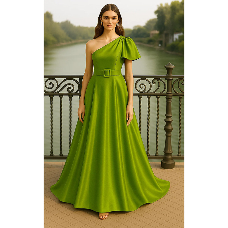 A-Line Floor Length Evening Gown Ball Gown Formal Dress Elegant Silky Short Sleeve One Shoulder Garden Party Wedding Pocket Satin Stretch Satin with Ruched Ruffles