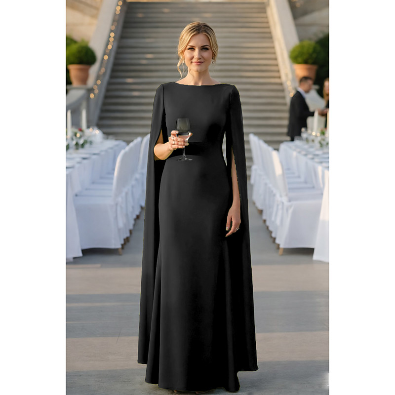 Sheath Column Floor Length Formal Dresses Evening Gown Cape Dress Ball Gown with Cape Evening Gown Formal Dress Elegant Celebrity Style Long Sleeve Boat Neck Garden Party Wedding with Solid Color