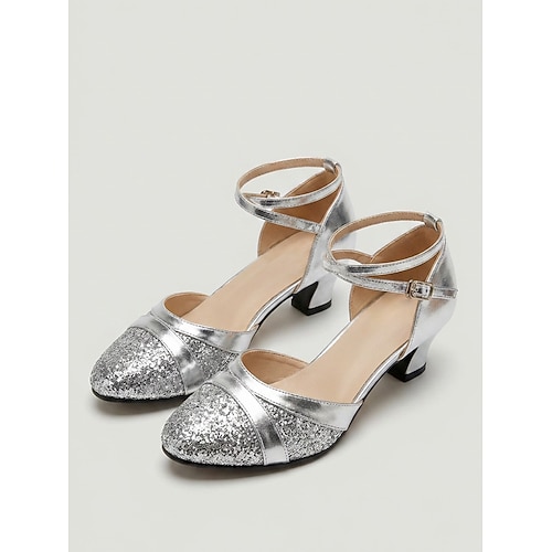 Blaue Damen-Balletttanzschuhe – Glitzer, geschlossene Zehenpartie, Latein Standard-Tanzschuhe mit Knöchelriemen
