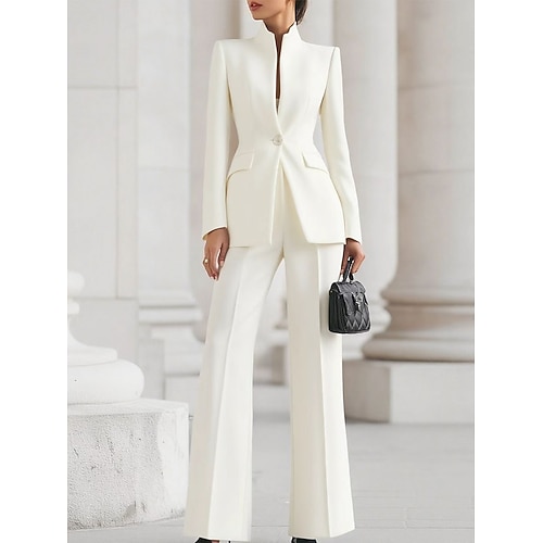 Per uomo Blazer Completi Affari Cocktail party Ricevimento di matrimonio 2 pezzi Moda Casual Primavera Autunno Poliestere Semplice Tasca Bottoni Confortevole Monopetto Giacca Nero Bianco Giallo Rosa