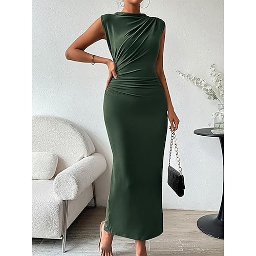 Per donna Abito maxi Abito da Ballo Vestito da Festa Vestito Casual Abito da Cocktail Elegante Moda Moderno All'aperto Festa serale Feste Vestibilità regolare Semplice Senza Maniche Collo Alto Nero