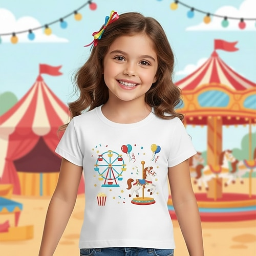 100% Cotone Costume di Carnevale 2026 Bambini Ragazze Blu Nero Bianco Grafico Maglietta Girocollo Manica Corta Vacanza Sport Outdoor Abbigliamento Quotidiano Vacanza Sport Casual Stampa Estate