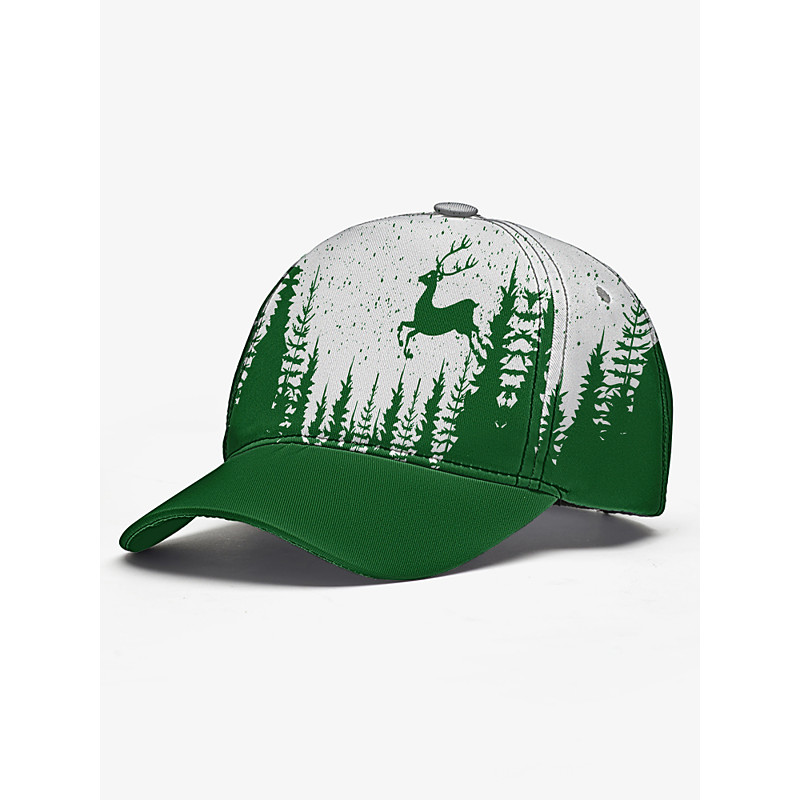 Men's Red and White Forest Deer Print Baseball Cap – Adjustable Casual Outdoor Hat for Nature Lovers