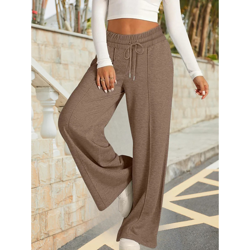 Women's Sweatpants Vacation Vintage Ethnic Style Full Length High Waist Solid Color Plain Drawstring Stretchy Outdoor Vacation Home Light Gray Dark-Gray Dark Brown Dark red Summer Spring Fall Winter