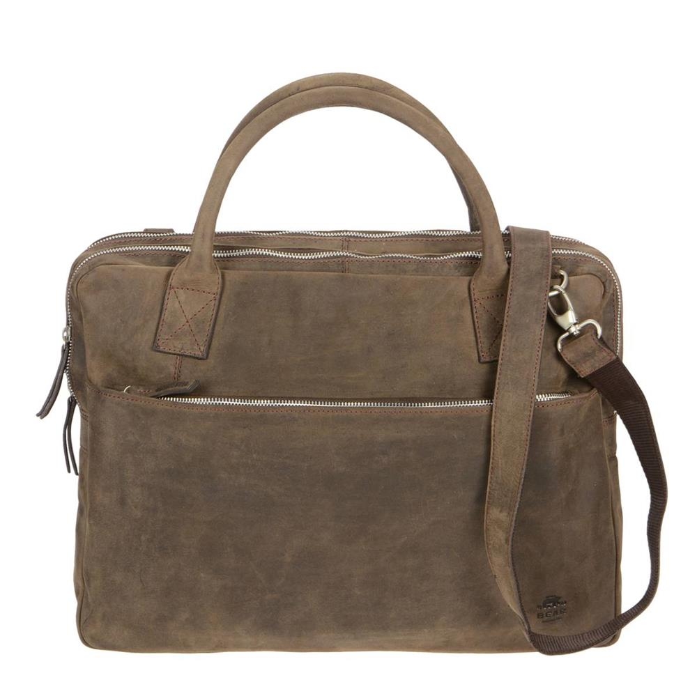 Bear Design Businesstasche DARK NATURE Herren Damen braun Leder Umhängetasche 42x31cm