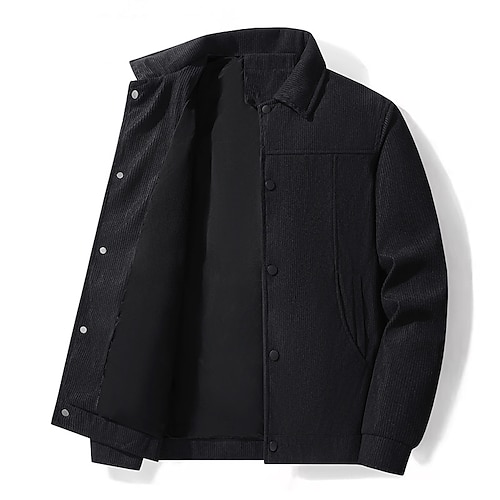 Herren Leichte Jacke Cordjacke Freizeitjacke Urlaub Täglich Warm Tasche Frühling Herbst Einfach Mode Klassisch Revers Regulär Schwarz Khaki Armeegrün Beige Jacken