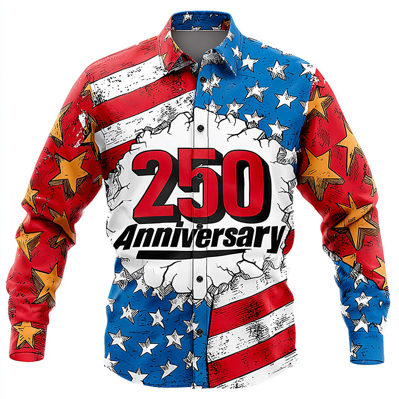 Men's US Flag Patriotic America's 250th Anniversary Shirt Button Up Shirt Long Sleeve Vintage Retro Holiday Casual Daily Spring Fall Turndown 3D Print Collared Shirts White Red