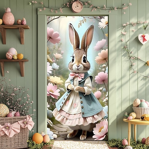 Pasqua Poster Copertura della porta Banner per esterni Rabbit Carino 3D Da serata Dormitorio Stanza per adolescenti Dormitorio universitario Ragazzi Man Cave Frat Bedroom Sfondi di ripresa