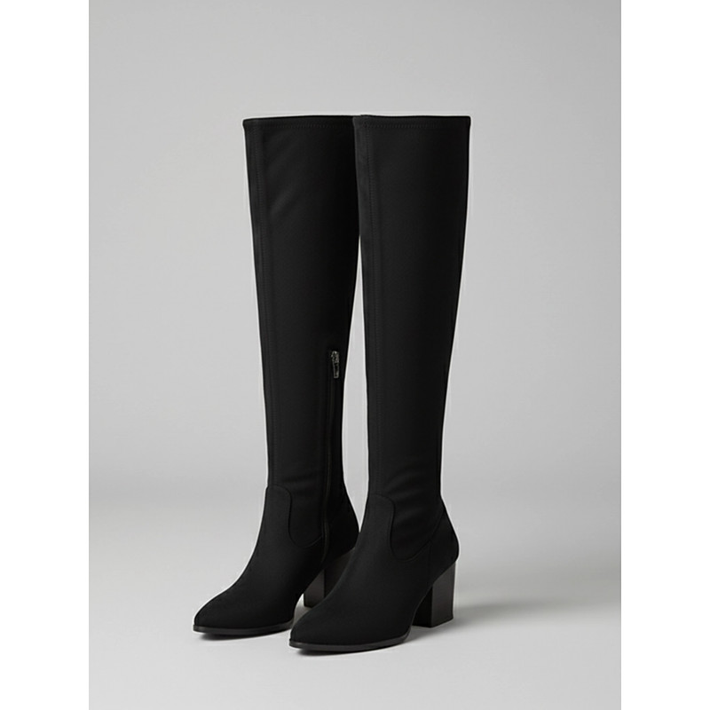 Women's Suede Knee-High Cowboy Boots – Western Style Pointed Toe Slouch Boots with Chunky Heel for Fall and Winter Fashion