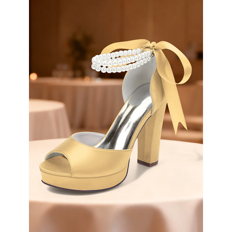 Women's Purple Satin Platform High Heel Sandals with Pearl Ankle Strap - Glamorous Open Toe Party Shoes for Evening, Wedding and Cocktail Events